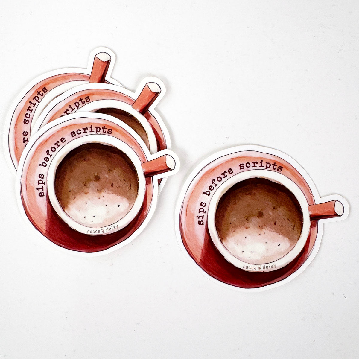 (1) Sips Before Scripts vinyl sticker from the February 2026 "Inklings" collection. This sticker was not included in any other kits.
