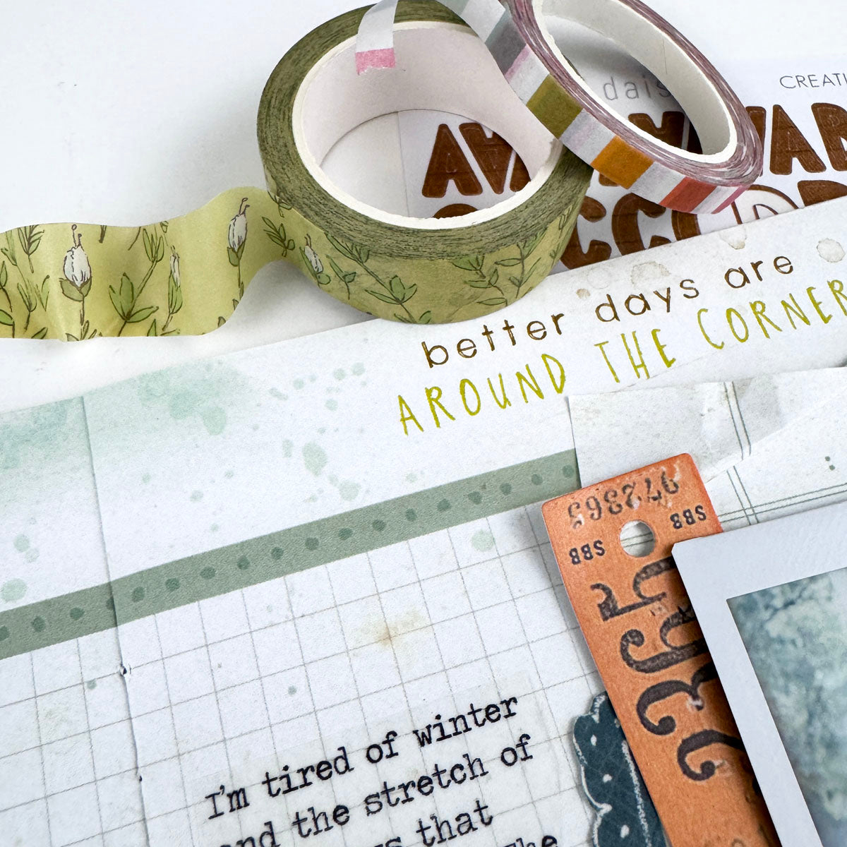 - Roll of “green floral” regular 15 mm washi tape ($3.99 retail value)