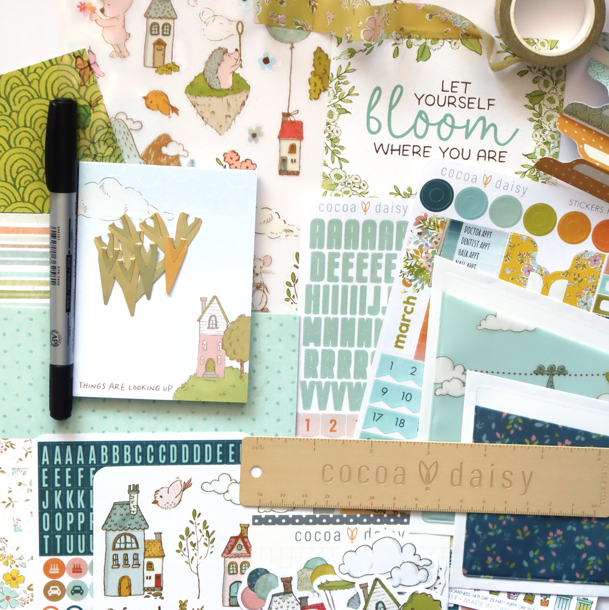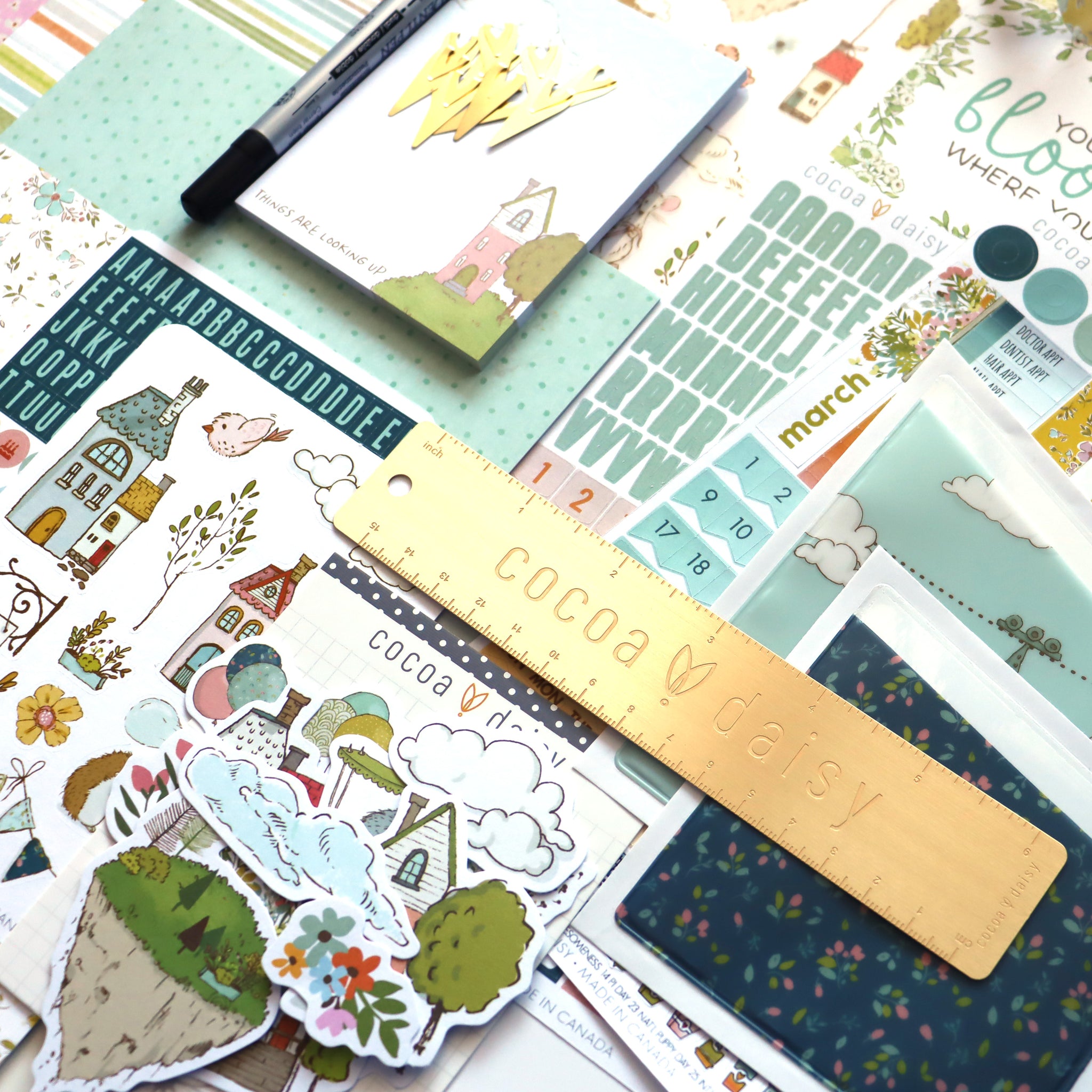 - 3 13x8.5" sheets of exclusive Cocoa Daisy double-sided paper, folded