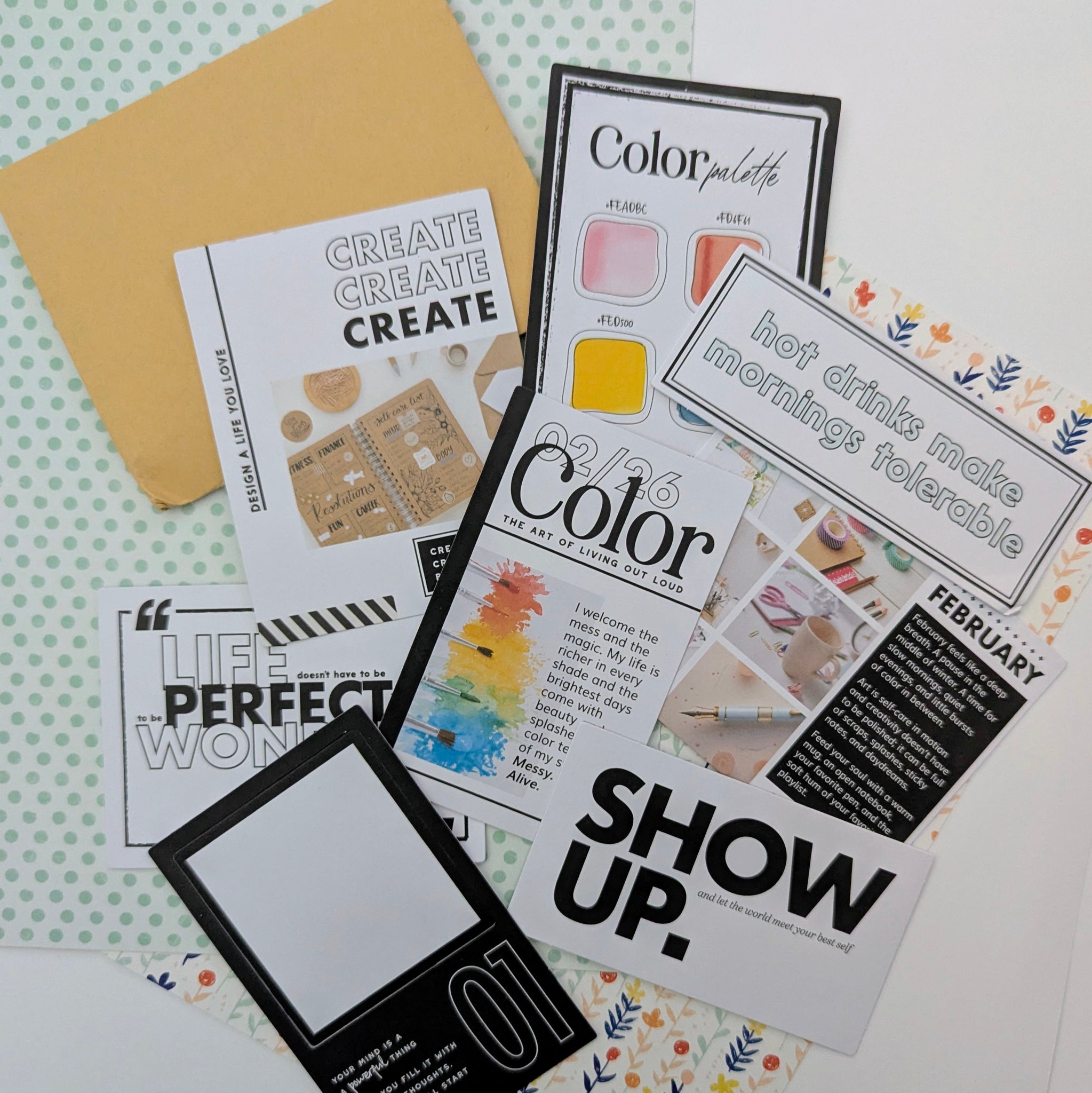 Set of decorative notecards in a kraft envelope that were included in the February 2026 "Inklings" Creative Kit.